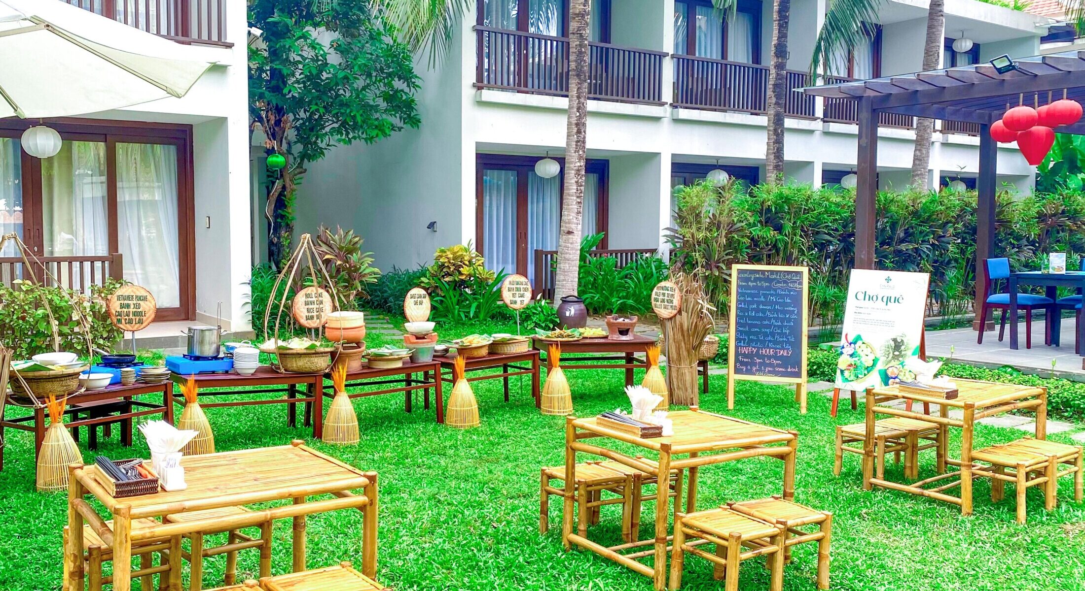 Celebrate the holidays with a charming “Chợ Quê” dining experience by the riverside. Enjoy a delightful spread of traditional Vietnamese dishes, fresh ingredients, and a peaceful garden setting.