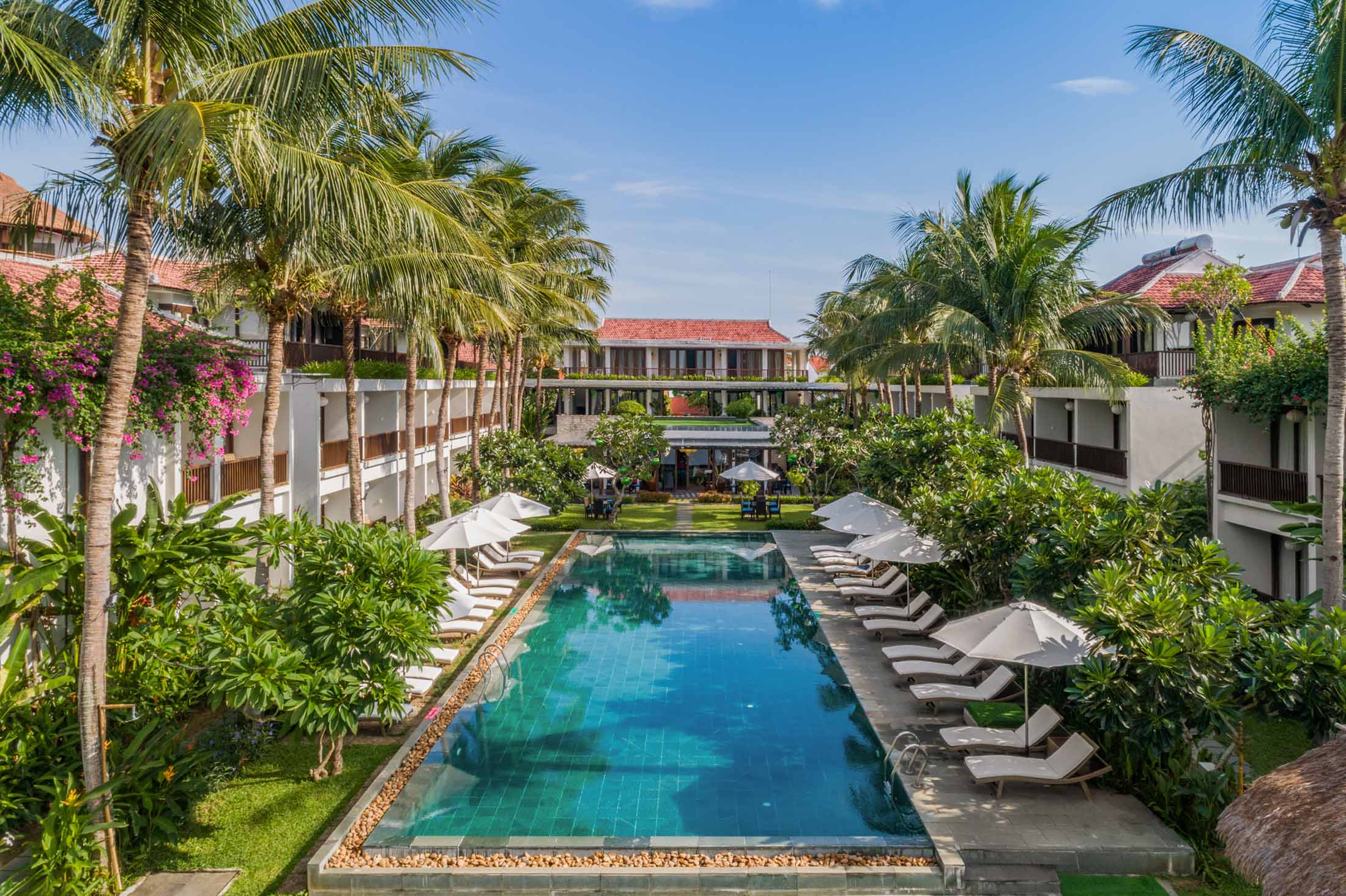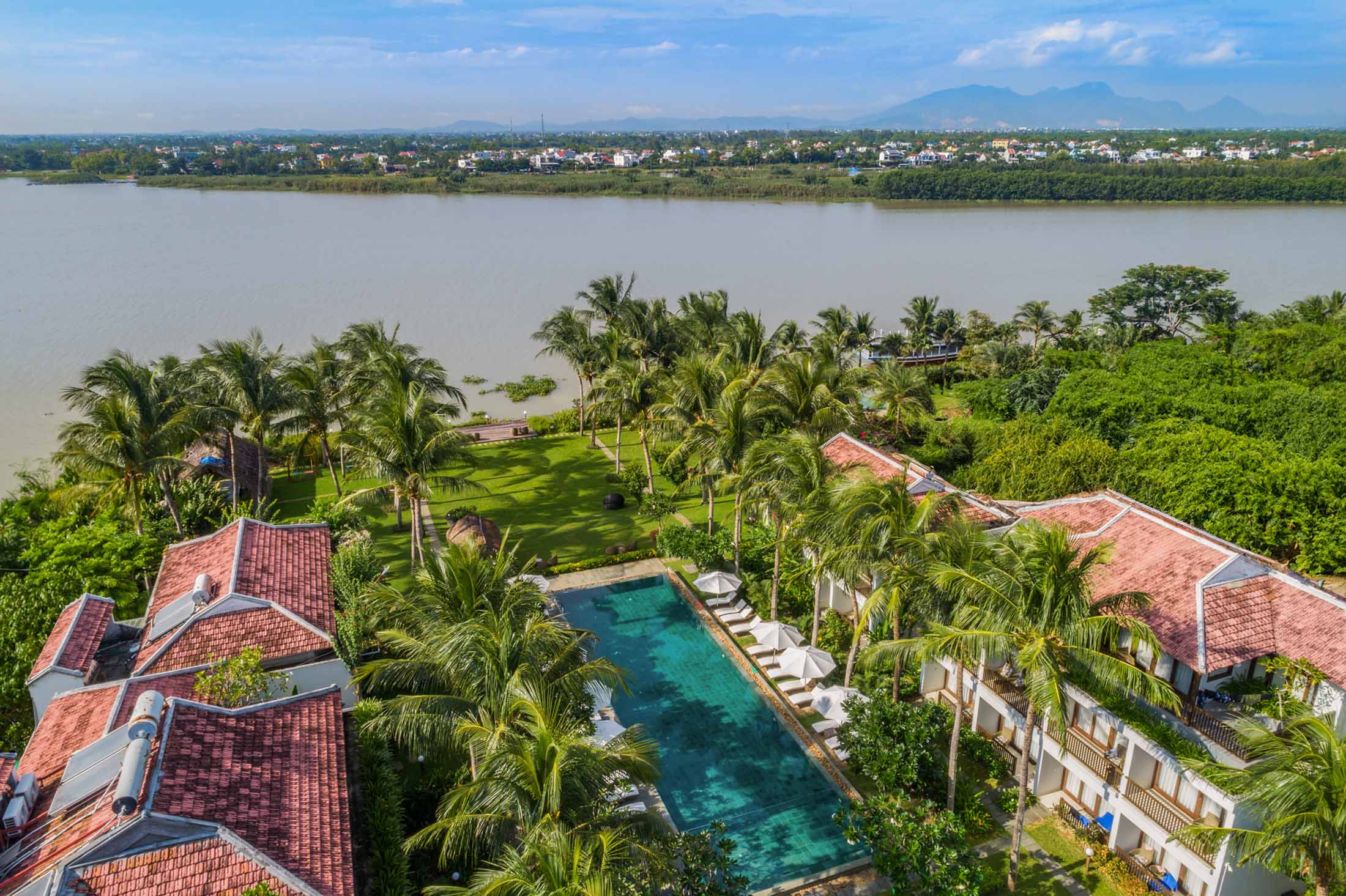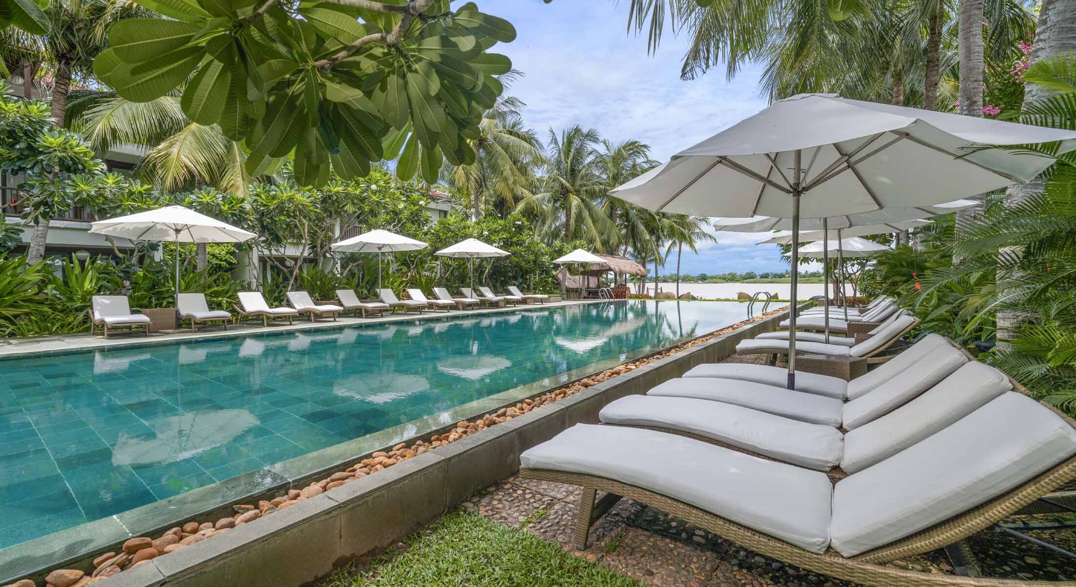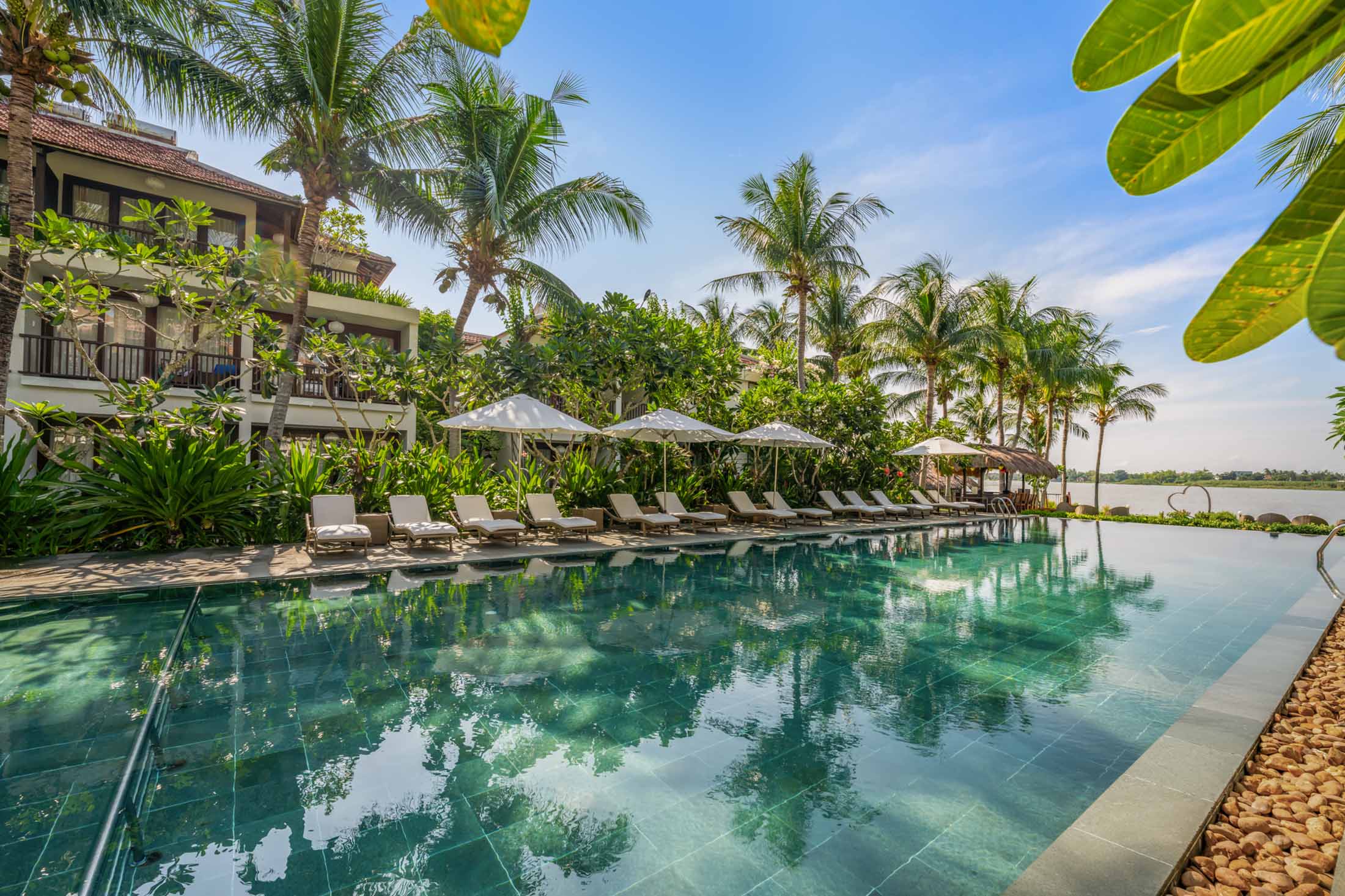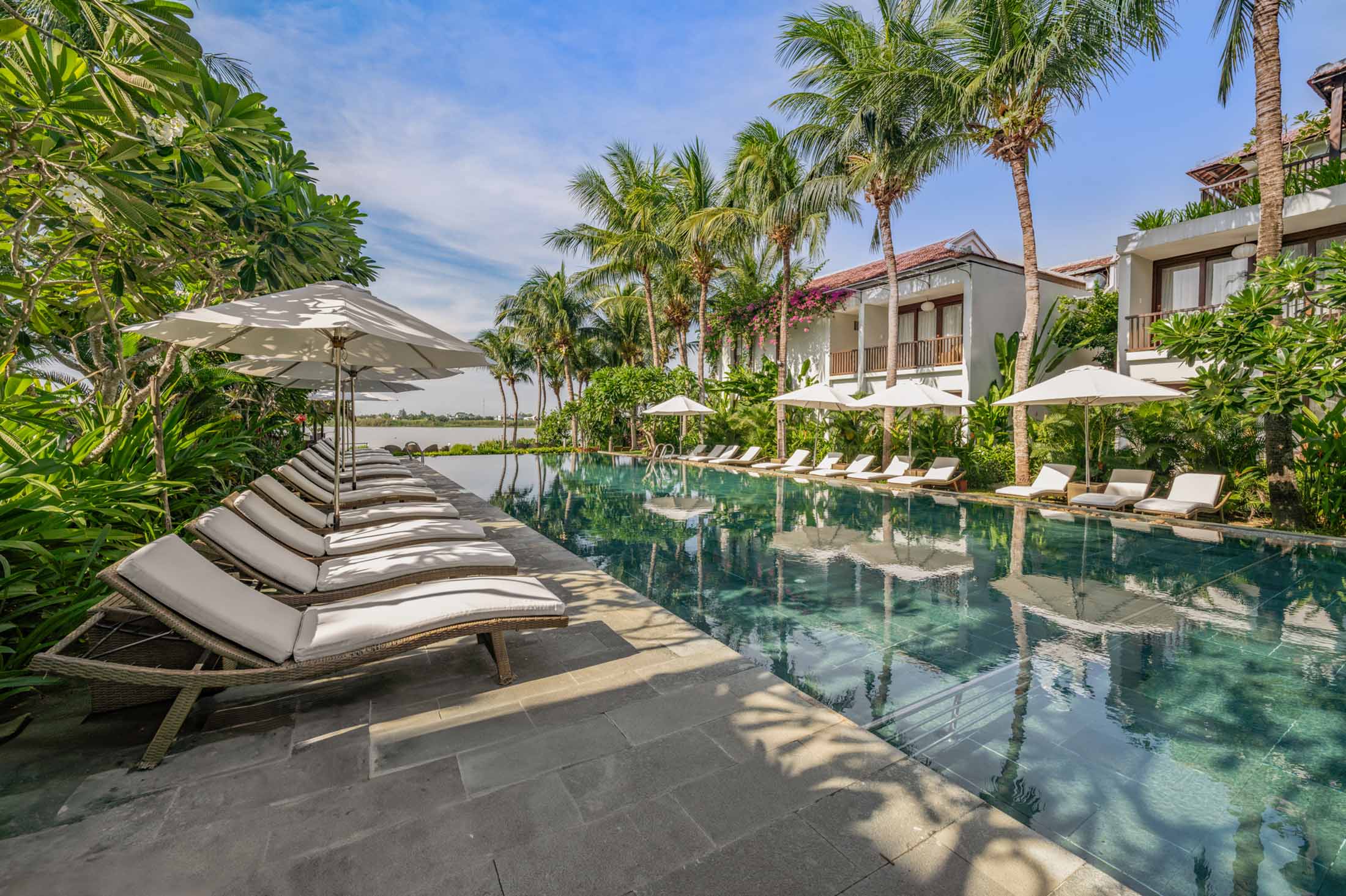 Spending your day at the swimming pool, tanning under the sun or simply lay down with a book. Located at the middle of an oasis and surrounded by the manicured garden, everything feels fresh and vibrant towards the Thu Bon river.