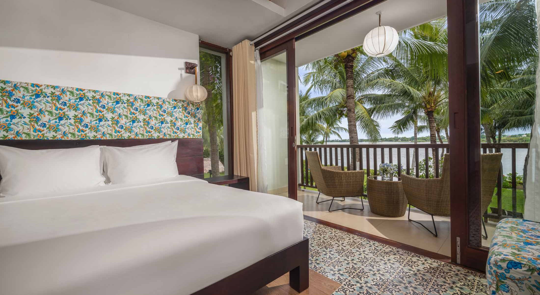 Nhìn ra khung cảnh dòng sông Thu Bồn rộng lớn từ mái hiên hoặc ban công. Không gian âm hưởng truyên thống và các điểm nhấn sắc màu sẽ là nơi trú ẩn tuyệt vời cho tâm hồn và cơ thể.